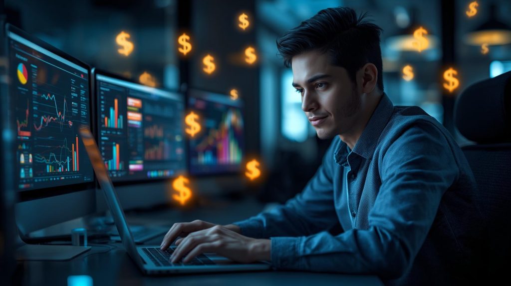 Digital Marketing Success – Professional Description This image represents the modern era of digital success and online entrepreneurship. A focused and ambitious digital marketer is working confidently on a laptop in a clean, professional workspace. Multiple screens display real-time analytics, social media growth charts, and rising revenue graphs, symbolizing progress, strategy, and smart decision-making. Soft […]